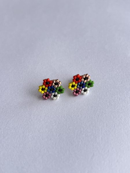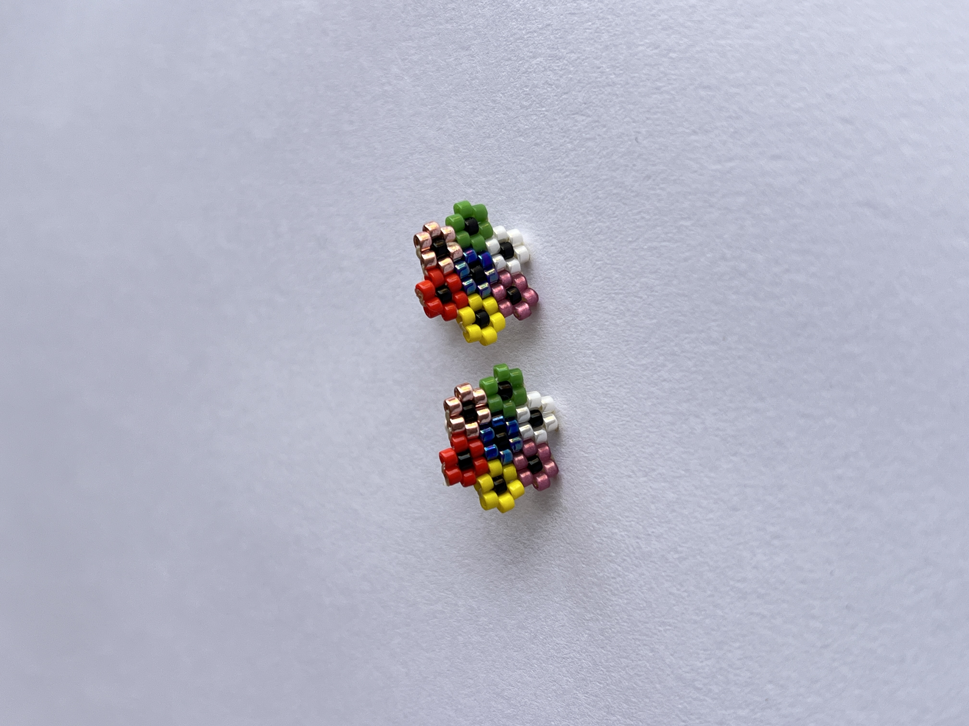 Arete pequeño en Miyuki hecho a mano con ayuda de mujeres indígenas madres cabeza de hogar.