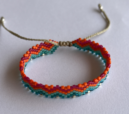 Pulsera plana 9 Hilos tejida en Miyuki, hecha a mano con ayuda de mujeres indígenas madres cabeza de hogar.